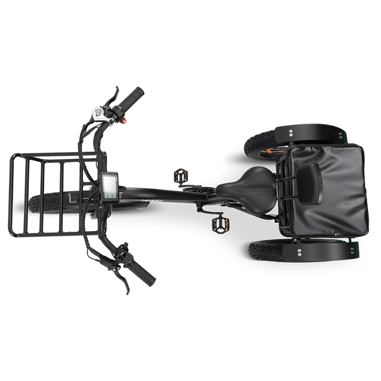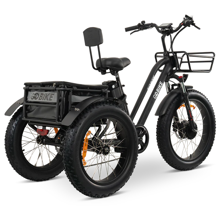 It's simple to get on and off this powerful step-through fat-tire electric trike. Our advanced hydraulic disc brakes provide the greatest stopping power with the least amount of effort. The all-terrain knobby tires are capable of handling any surface. It comes with front and rear metal baskets, making it a great alternative for both work and play. GOBIKE FORTE comes with an adjustable front suspension and a soft seat with a backrest for a more enjoyable ride.