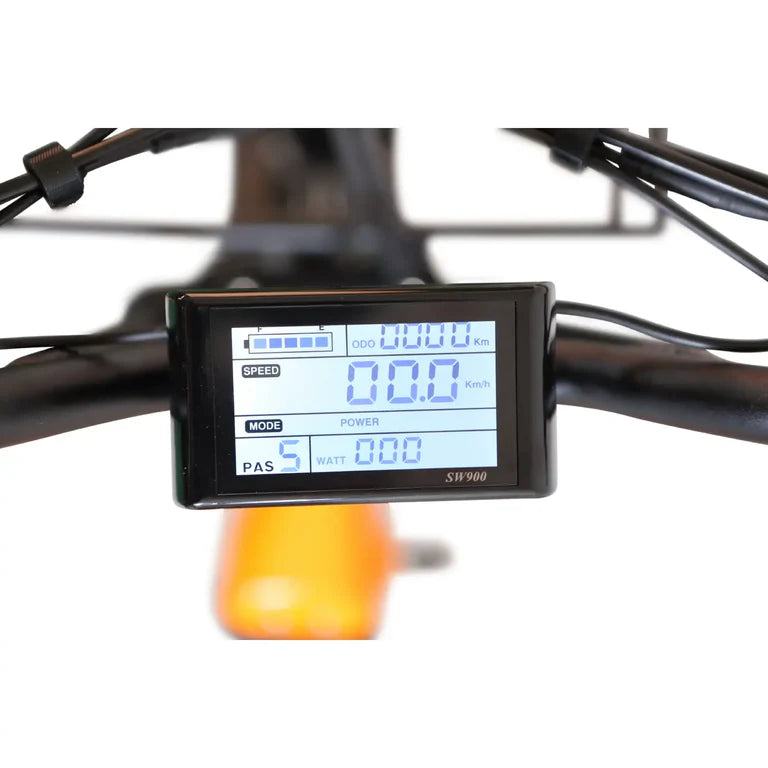 The backlit LCD display is your communication center. Here, you will find your speed, power assist (PAS) level, battery level, and odometer. This multifunctional display is weather resistant and includes a USB charging port