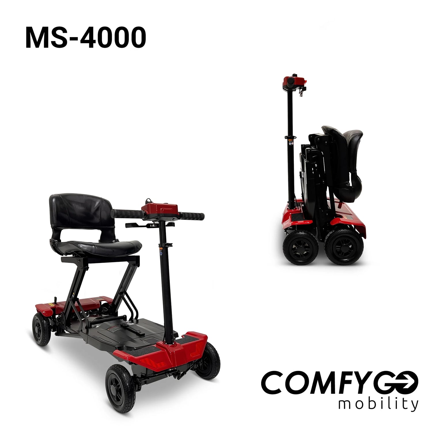 Discover the ultimate urban commuting solution with the MS4000 Foldable Mobility Scooter. Lightweight at just 69 lbs including the battery, and designed for adult age groups, this innovative 4-wheel scooter offers a smooth and comfortable ride for daily urban adventurers. Its long-range capabilities, coupled with environmentally friendly performance, make it perfect for navigating bustling city streets and reducing your carbon footprint. With its 250W DC motor, the MS4000 can providing a top speed of 5 mph. Choose a 8AH battery for up to 13 miles of range and customize your ride with a standard or plus seat for adjustable width, ensuring optimum comfort during your travels.