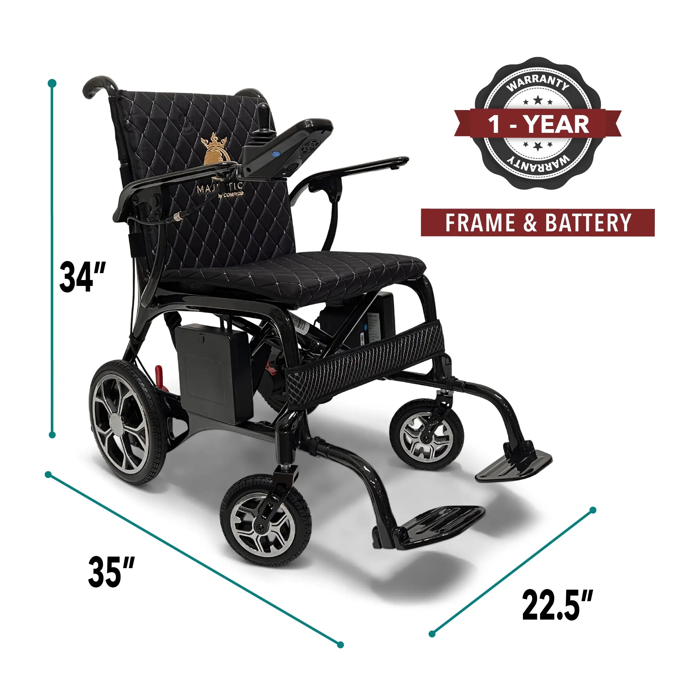 - The ComfyGO Mobility Phoenix Carbon Fiber Foldable Electric Wheelchair comes equipped with two standard 6.6AH lithium-ion batteries featuring a quick-release function, making them easily removable for travel or charging purposes.