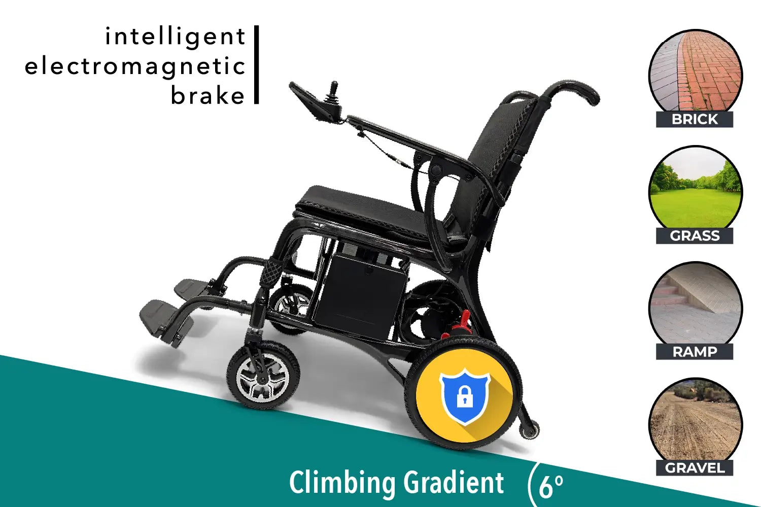 - Enjoy a safe and smooth ride with our electric wheelchair featuring intelligent electromagnetic brakes built into the motors.
