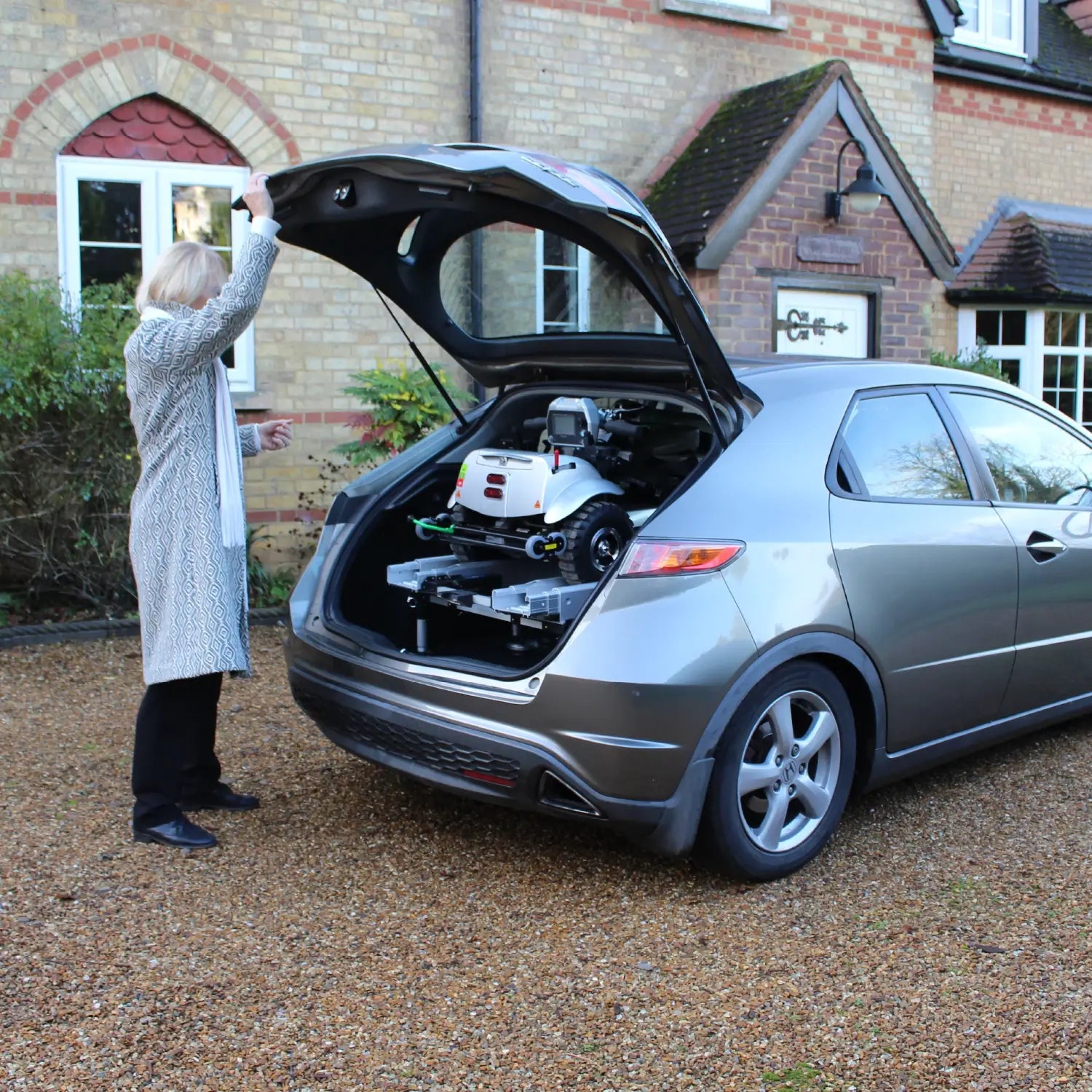 The Quingo Flyte MK2 mobility scooter is an innovative solution for individuals seeking independence and convenience in their daily lives. Its unique self-loading docking station, compatible with a wide range of vehicles, allows for effortless loading and unloading within minutes, eliminating the need for additional equipment or assistance.
