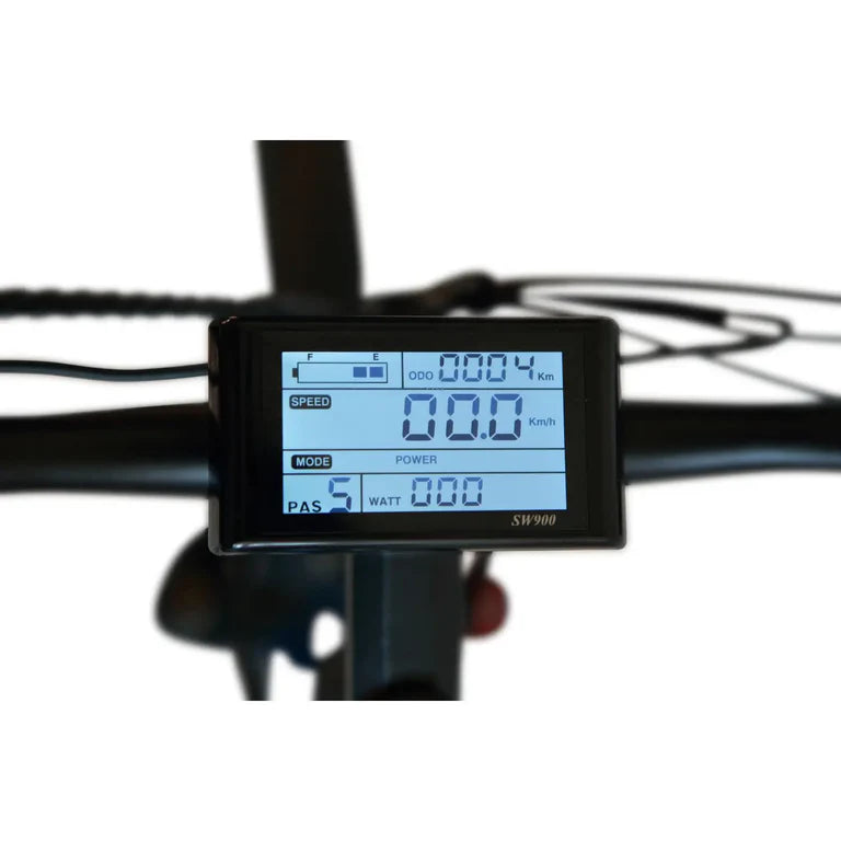 The backlit LCD display is your communication center. Here, you will find your speed, power assist (PAS) level, battery level, and odometer. This multifunctional display is weather resistant and includes a USB charging port